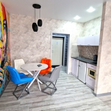 Отличная двухкомнатная квартира в новом доме с дизайнерским ремонтом. Есть все необходимое для комфортного проживания: два больших ЖК телевизора, кабельное более 150 каналов, интернет Wi-Fi, хорошая гладильная доска и утюг, фен, постельные принадлежности, полотенца, средства гигиены. Небольшая, но безумно уютная спальня, с хорошими плотными шторами, новая широкая двуспальная кровать с хорошим матрасом. Гостиная совмещена с кухонной зоной, все оформлено в современном стиле. Присутствует вся необходимая бытовая техника (керамическая варочная плита, микроволновая печь, холодильник, чайник), стол, мягкие стулья, вся необходимая новая посуда на несколько персон, фужеры, бокалы и другие приятные мелочи. С/у совмещенный, с большой новой ванной, удобным унитазом, стиральной машиной. В зоне гостиной раскладывающийся диван и ЖК телевизор. Окно с лоджией выходят во двор, что дает возможность спокойно открывать окна. Во дворе дома имеется большая современная детская площадка и хорошая парковочная зона. Такая квартира является отличной альтернативой любой гостинице, как по комфорту, так и по цене. Рядом находится множество магазинов разной направленности, торговые центры «Владимирский» и «Император», гипермаркеты «Аллея», «Командор», «Бристоль», различные кафе «Сытный дворик», «Кавказская пленница», аптеки, банки, недалеко от дома автобусная остановка. Все фотографии соответствую действительности. В квартире чисто и по-домашнему уютно. Курение в квартире запрещено. Делаем отчетные документы. Для увеселительных мероприятий не сдаем. Работаем ежедневно, круглосуточно.