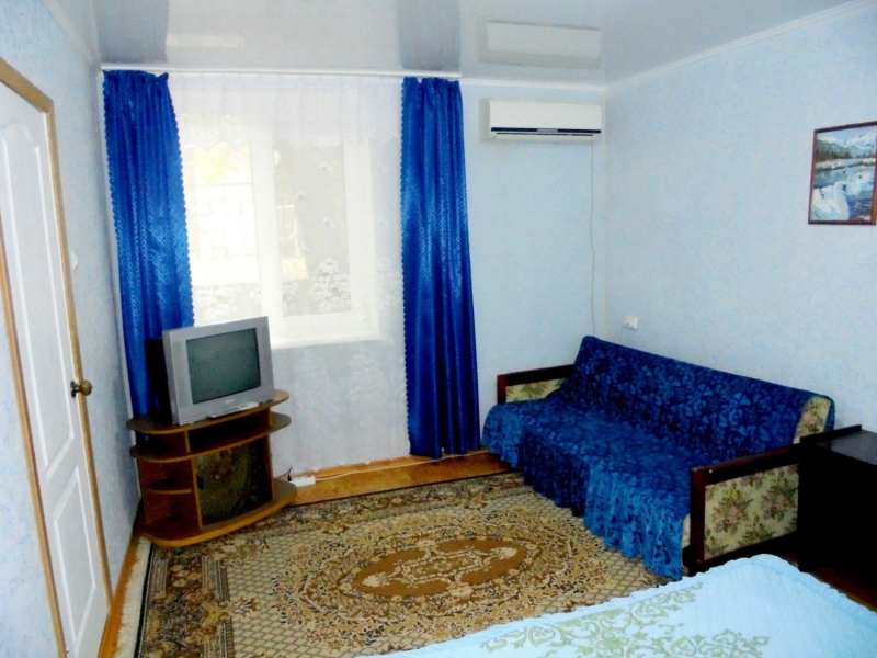 Сдаётся домик под абрикосовым деревом на 2-4 человека. В домике имеются: двухспальная кровать, диван-кровать, шкаф, стол, две тумбочки, телевизор с кабельным TV, интернет Wi-Fi, душ, туалет, кондиционер (сплит-система), холодная и горячая вода круглосуточно, так как в этом дворе имеются запасные емкости на одну тонну воды, что очень облегчает отдых. Услуга стирки предоставляется бесплатно. Своя кухня со всей необходимой посудой для приготовления и приема пищи.