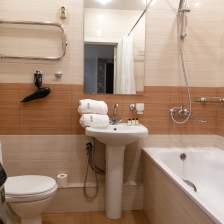 - Гигиенические принадлежности (шампунь, гель для душа, мыло и одноразовые тапочки).