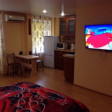 На кухне Вы сможете воспользоваться кухонным гарнитуром, необходимыми столовыми принадлежностями и посудой.