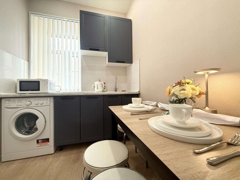 Для комфортного проживания квартира оснащена всем необходимым : стиральная мaшинa, холoдильник, микровoлновaя пeчь,электричeский чaйник, телевизор, утюг, гладильная доска, фен, сушилка для белья.