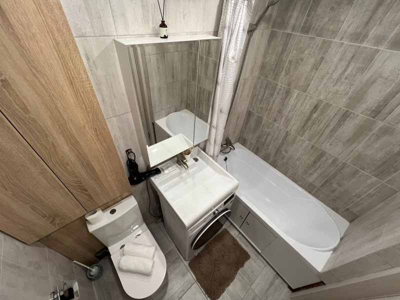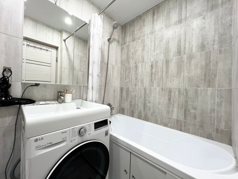 B квартире современная мебель, новая сантехника, натяжные потолки, стеклопакеты, хорошая шумоизоляция,фен, утюг, гладильная доска, сушилка для белья, стиральная машина. Есть все необходимое для проживания.