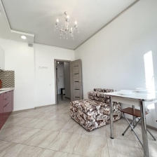 В квартире современная мебель, новая сантехника, натяжные потолки, стеклопакеты, хорошая шумоизоляция,фен, утюг, гладильная доска, сушилка для белья, стиральная машина. Есть все необходимое для проживания.