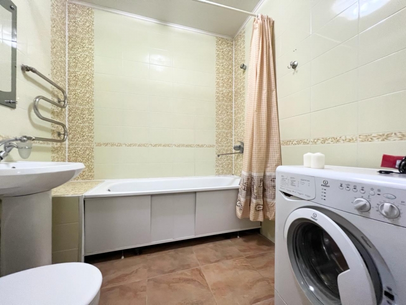 В квартире современная мебель, новая сантехника, натяжные потолки, стеклопакеты, хорошая шумоизоляция,фен, утюг, гладильная доска, сушилка для белья, стиральная машина. Есть все необходимое для проживания.