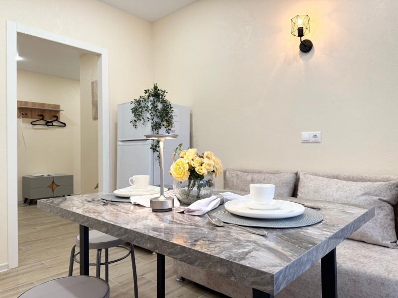 Сдается двухкомнатная квартира в тихом центре, в новом многоэтажном домe 2023 года постройки, расположенном в 5 минутах езды на машине от центра города. С новым и качественным ремонтом.