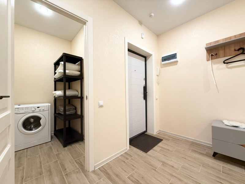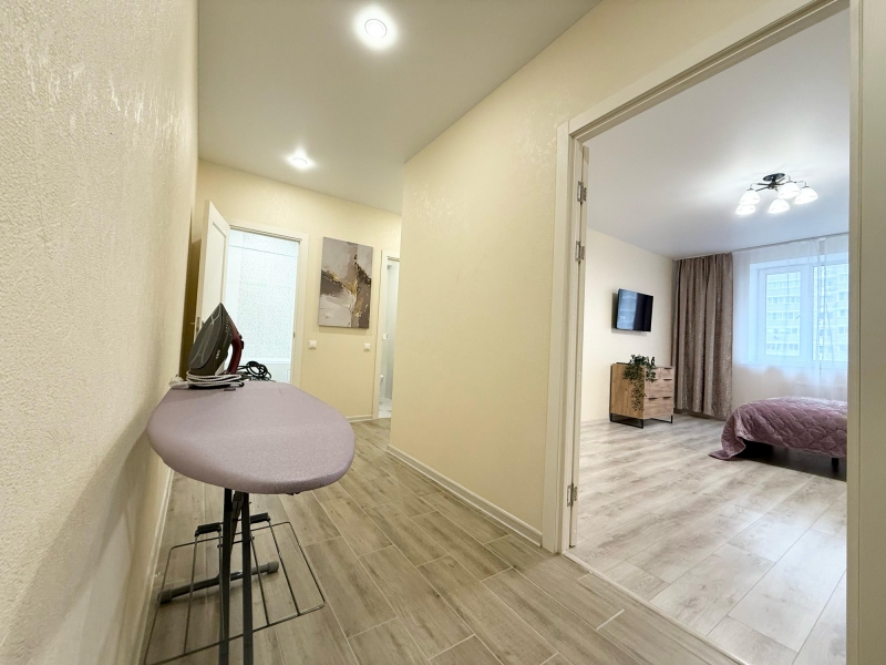 В квартире два телевизора, современная мебель, новая сантехника, натяжные потолки, стеклопакеты, хорошая шумоизоляция, фен, утюг, гладильная доска, сушилка для белья, стиральная машина. Есть все необходимое для проживания.