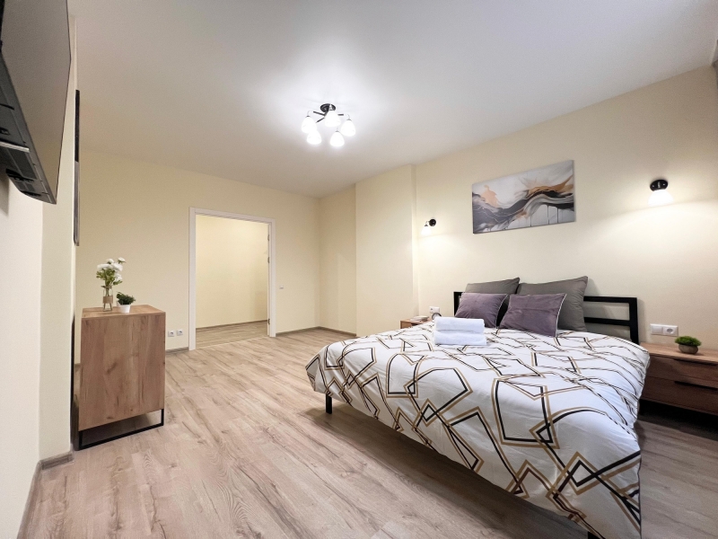 В квартире два телевизора, современная мебель, новая сантехника, натяжные потолки, стеклопакеты, хорошая шумоизоляция, фен, утюг, гладильная доска, сушилка для белья, стиральная машина. Есть все необходимое для проживания.