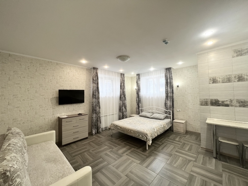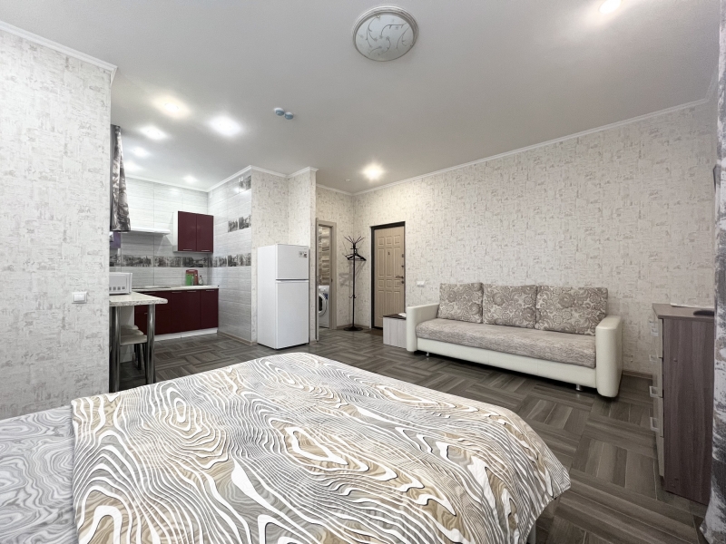 Комфортабельная квартира-студия в новом доме в центре города на цокольном этаже, с евро ремонтом и теплыми полами.