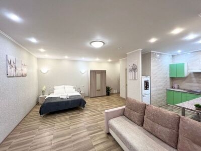 Комфортабельная квартира-студия в новом доме в центре города на цокольном этаже, с евро ремонтом и теплыми полами.