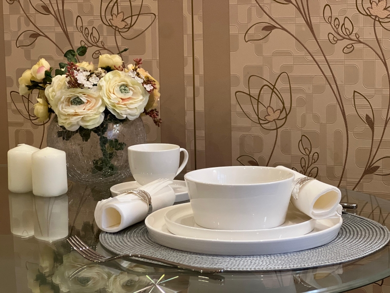 Кухня оснащена всеми необходимыми бытовыми приборами (холодильник, микроволновка, электрический чайник, духовка) и столовыми принадлежностями (кастрюли, сковорода, кружки, тарелки, столовые приборы).