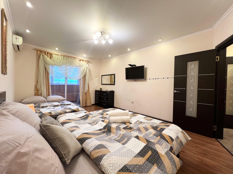 В квартире современная мебель, новая сантехника, натяжные потолки, стеклопакеты, хорошая шумоизоляция,фен, утюг, гладильная доска, сушилка для белья, стиральная машина, кондиционер! Есть все необходимое для проживания. В Вашем распоряжении: большая двуспальная кровать и двуспальный диван.