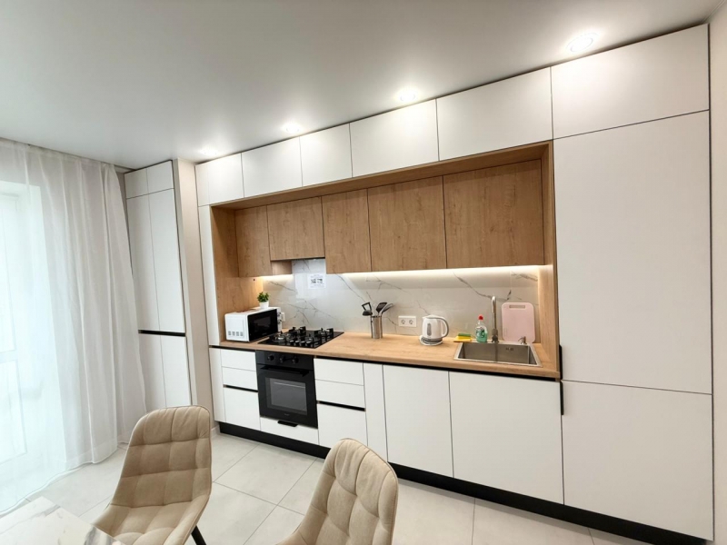 Если вы любите чистоту и комфорт - вам сюда. Погрузиться в атмосферу праздника и отличного настроения можно уже сегодня + качественный сервис! Комфортабельная квартира в новом доме, с евро ремонтом и стильным дизайном.