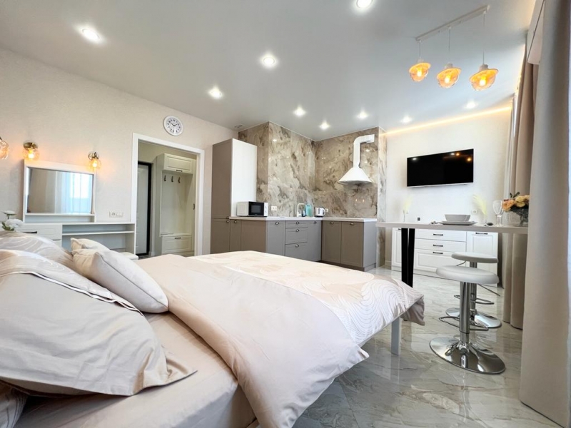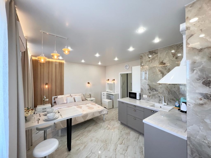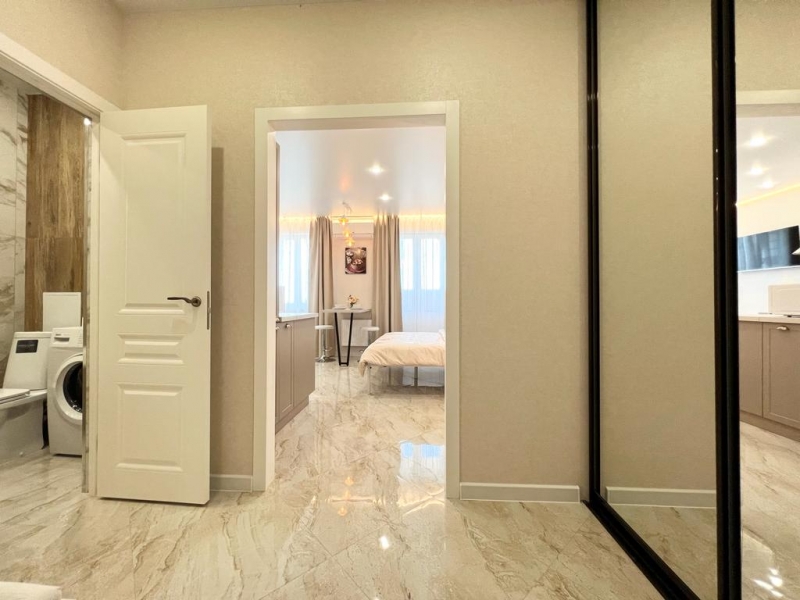 Сдается квартира-студия в тихом центре, в новом многоэтажном домe 2023 года постройки, расположенном в 5 минутах езды на машине от центра города. С новым и качественным ремонтом.