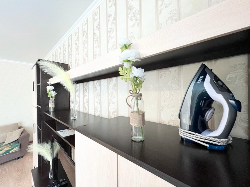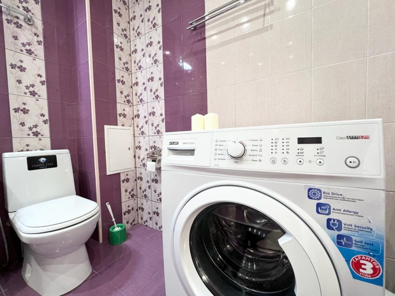 В квартире современная мебель, новая сантехника, натяжные потолки, стеклопакеты, хорошая шумоизоляция,фен, утюг, гладильная доска, сушилка для белья, стиральная машина. Есть все необходимое для проживания.