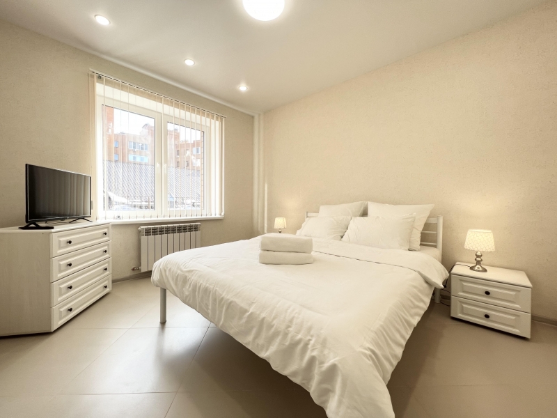 В квартире современная мебель, новая сантехника, натяжные потолки, стеклопакеты, фен, утюг, гладильная доска, сушилка для белья, стиральная машина. Есть все необходимое для проживания. В Вашем распоряжении: большая двуспальная кровать с мягкими подушками, двуспальный диван. Дополнительное спальное место предоставляется по запросу .