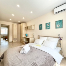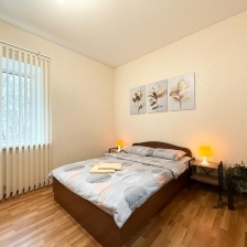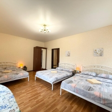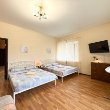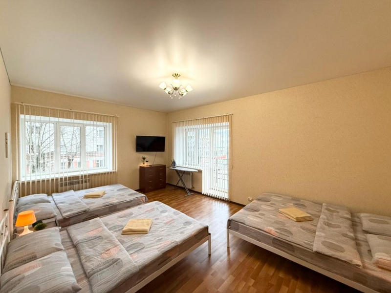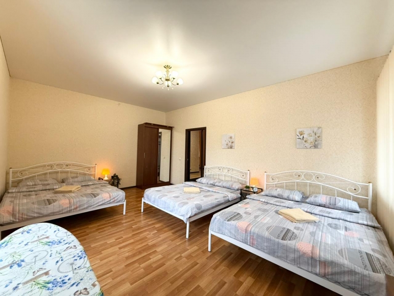 В вашем распоряжении — всё необходимое для комфортного проживания. В квартире установлены 2 телевизора со Smart TV , а также размещены 4 удобные кровати: 3 кровати размером 140 × 200 см и 1 кровать размером 160 × 200 см. Все кровати оснащены ортопедическими матрасами, которые обеспечат вам здоровый и крепкий сон .