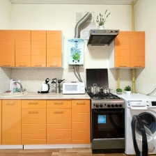 Кухня полностью оборудована для приготовления любимых блюд: здесь есть холодильник, микроволновая печь, электрический чайник, духовка , а также весь необходимый набор посуды — кастрюли, сковороды, кружки, тарелки и столовые приборы. Для вашего удобства в квартире также имеются стиральная машина, утюг и фен.