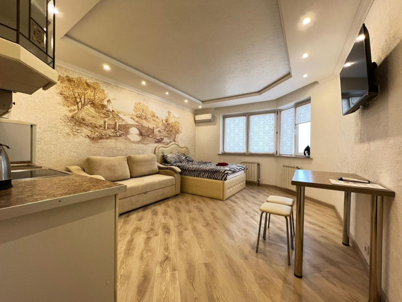 Сдается квартира-студия в тихом центре, в новом многоэтажном комплексе состоящем из 5 домов расположенном в 5 минутах езды на машине от центра города. С новым и качественным ремонтом.