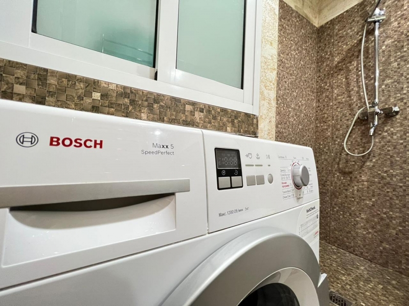 В квартире современная мебель, новая сантехника, натяжные потолки, стеклопакеты, хорошая шумоизоляция, фен, утюг, гладильная доска, сушилка для белья, стиральная машина. Есть все необходимое для проживания.