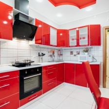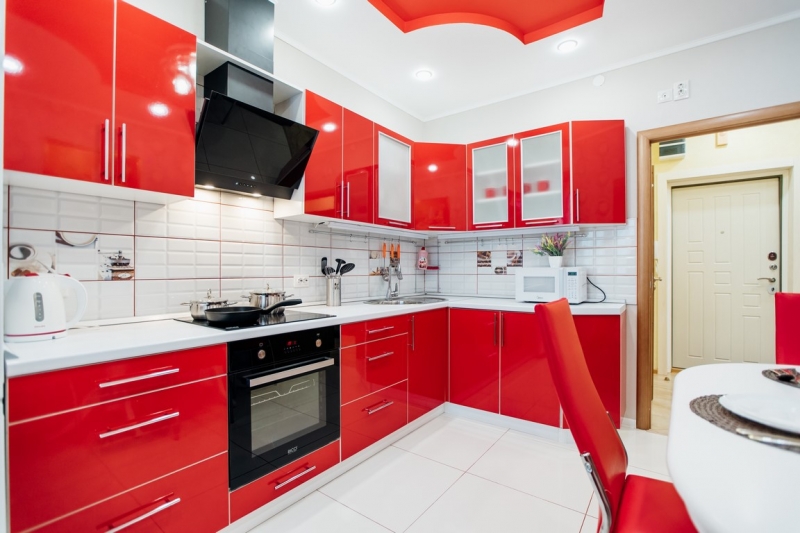 Кухня оснащена всеми необходимыми бытовыми приборами (холодильник, микроволновка, электрический чайник, вытяжка) и столовыми принадлежностями (кастрюли, сковорода, кружки, тарелки, столовые приборы).
