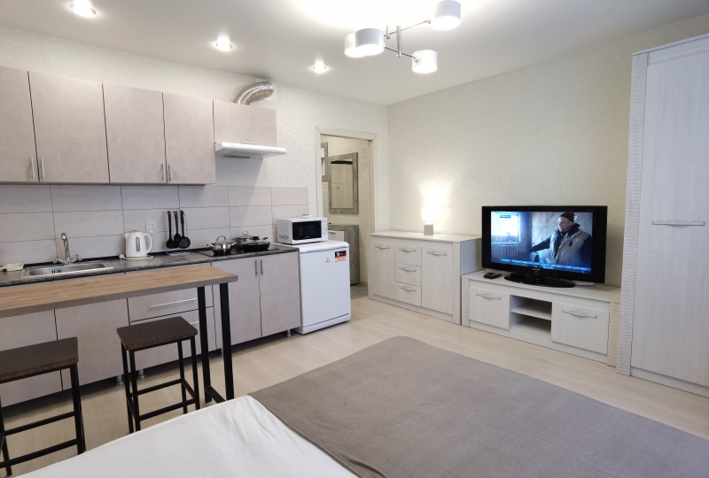 Сдается квартира-студия в тихом центре, в новом многоэтажном комплексе состоящем из 5 домов расположенном в 5 минутах езды на машине от центра города. С новым и качественным ремонтом.