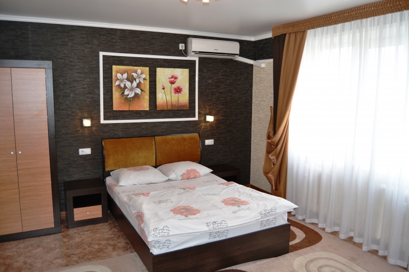 Стоимость номера Стандарт- от 2000 рублей в сутки, номер Люкс- от 2500 рублей в сутки, номер Бизнес- от 3300 рублей в сутки. В номер свыше двух человек не заселяем. В каждом номере бесплатный интернет WI-FI. Номера оснащены полностью оборудованной кухней, со всеми бытовыми с столовыми приборами. В номерах установлены кондиционеры.